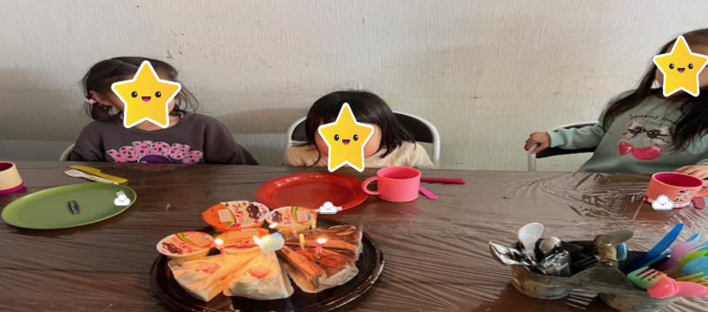 みんなでゲームをしてケーキにトッピングするおやつを手に入れたり